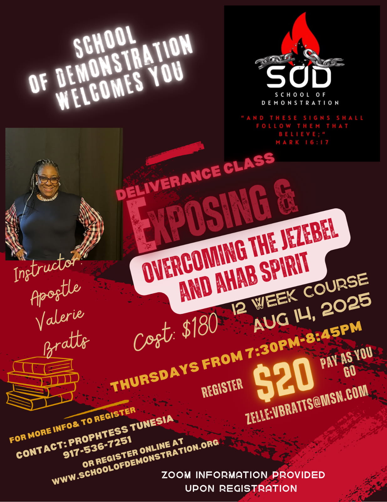 The School of Demonstration is designed to equip believers to navigate the dynamic ministries of deliverance and the prophetic. We strongly believe that these two ministries are vital to advancing the Kingdom of God, as they empower the believer to walk in spiritual authority and discernment.